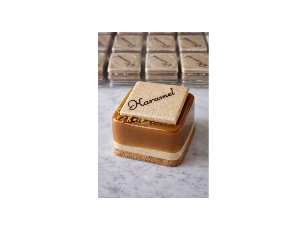 Karamelová čokoládová dekorace PCB z kvalitní čokolády je ideální volbou pro profesionální zdobení dortů, zákusků a moderních cukrářských dezertů.