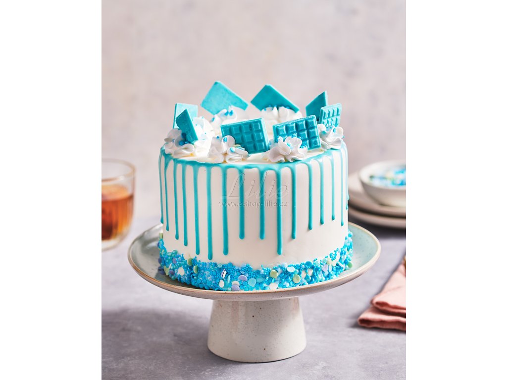 Složení: cukr, rýžová mouka, částečně hydrogenovaný rostlinný olej (řepkový), zahušťovadlo: E413, barvivo: E133, E163, aroma