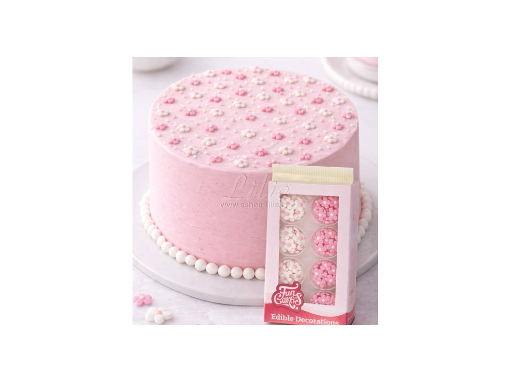 Tyto růžovo-bílé cukrové květinky jsou oblíbenou cukrářskou dekorací pro dorty, cupcakes i slavnostní zákusky. Díky jemnému vzhledu a hotové formě jsou ideální pro domácí i profesionální cukráře.