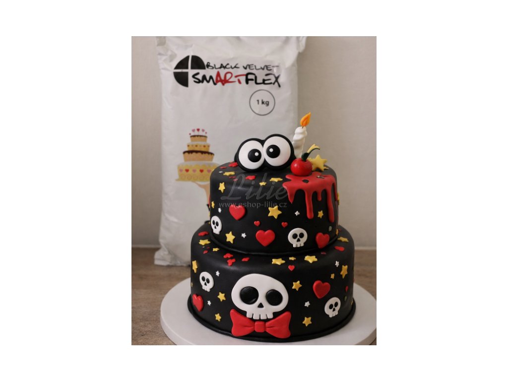 Pro dosažení autentického cartoon efektu doporučujeme hladký potah z Black Velvet Smartflex a následné dokreslení obrysů bílým fondánem, krémem nebo cukrářským fixem. Výsledný dort působí jako ručně kreslený.