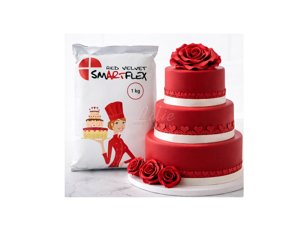 Smartflex Red Velvet Vanilka je profesionální cukrářská potahovací hmota v intenzivní červené barvě s jemnou vanilkovou chutí. Díky své pevnosti a pružnosti je ideální pro potahování dortů, ale i modelaci dekorací.