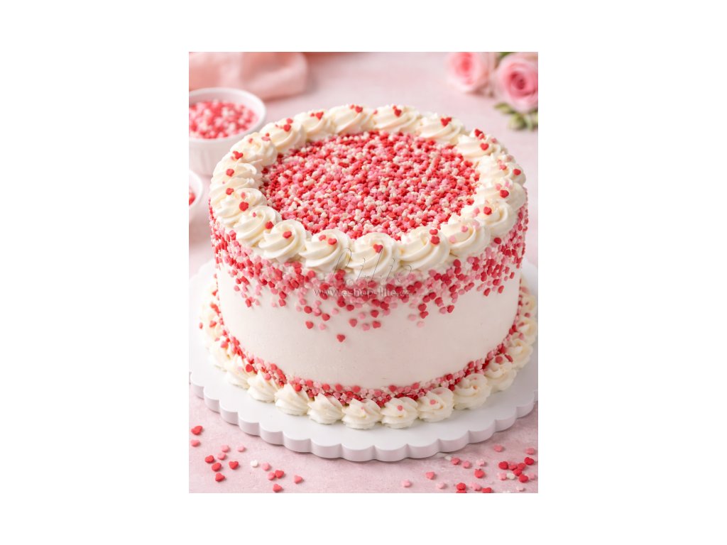 Srdíčka stačí lehce posypat na krém, polevu nebo čokoládu – bez složité přípravy.