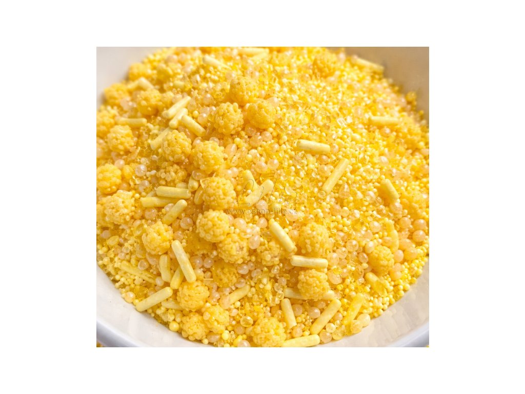Žlutý cukrový mix FunCakes je praktické a efektní cukrové zdobení, které dodá vašim dezertům barvu, strukturu a radostný vzhled. Skvěle se hodí na dorty, cupcakes, cake pops, sušenky i krémy. Díky kombinaci různých tvarů a textur vytvoříte dekoraci během několika vteřin – bez složitého zdobení. Mix je ideální pro jarní, velikonoční i dětské dezerty, ale také pro moderní minimalistické dorty, kde chcete barevný akcent.