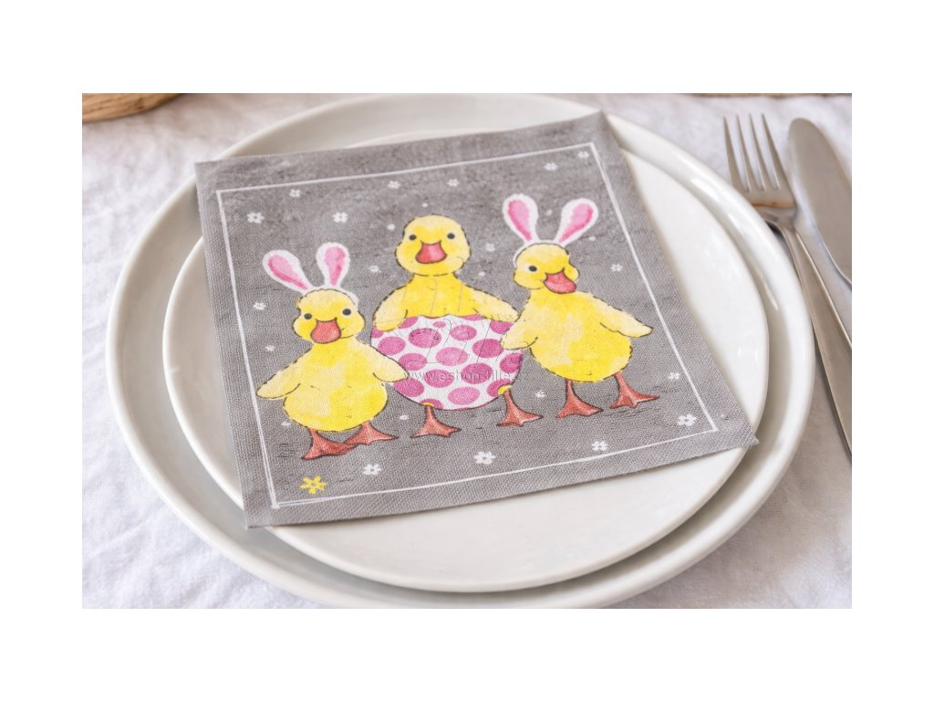Velikonoční ubrousky s jarním motivem jsou nezbytným doplňkem každé sváteční tabule. Díky vysoké savosti a pevnosti papíru bez problémů nahradí textilní ubrousky – drží tvar při skládání a působí esteticky i při profesionální prezentaci.