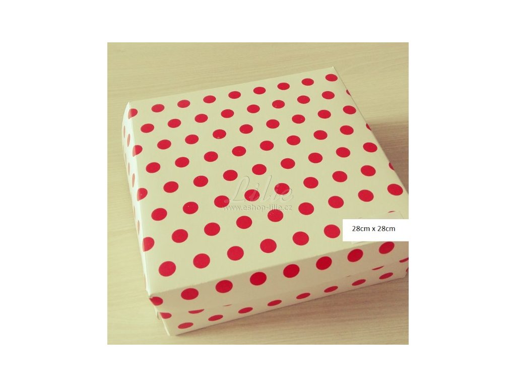 Dortová krabice velký červený puntík 25cm x 25cm / 5ks