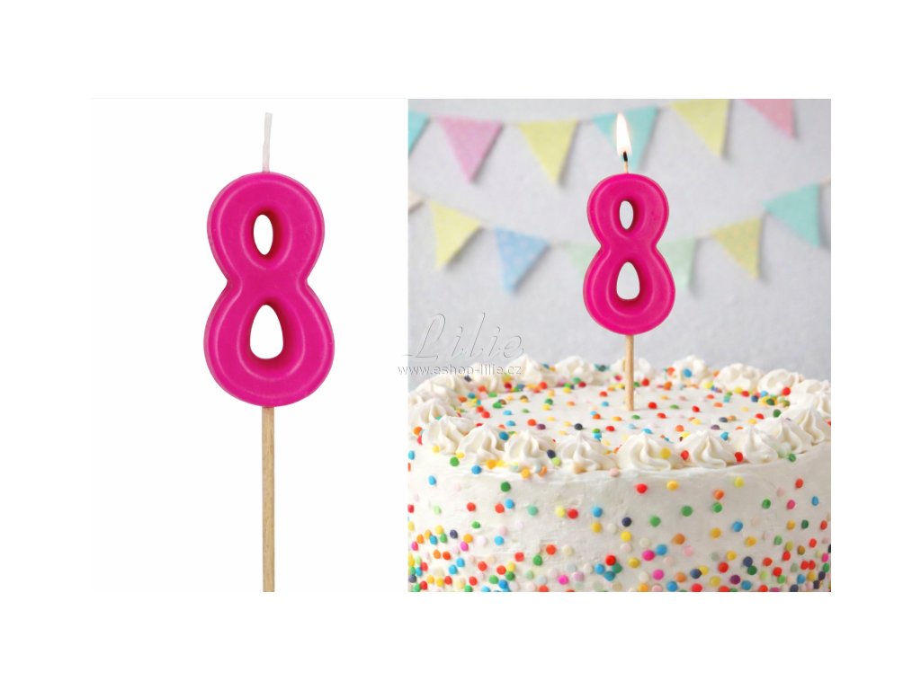 Narozeninová dortová svíčka číslo 8 v tmavě růžové barvě je ideální dekorací pro dětské dorty, narozeninové oslavy a tematické party.