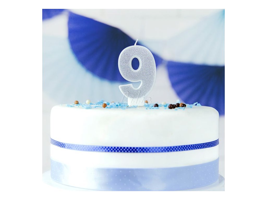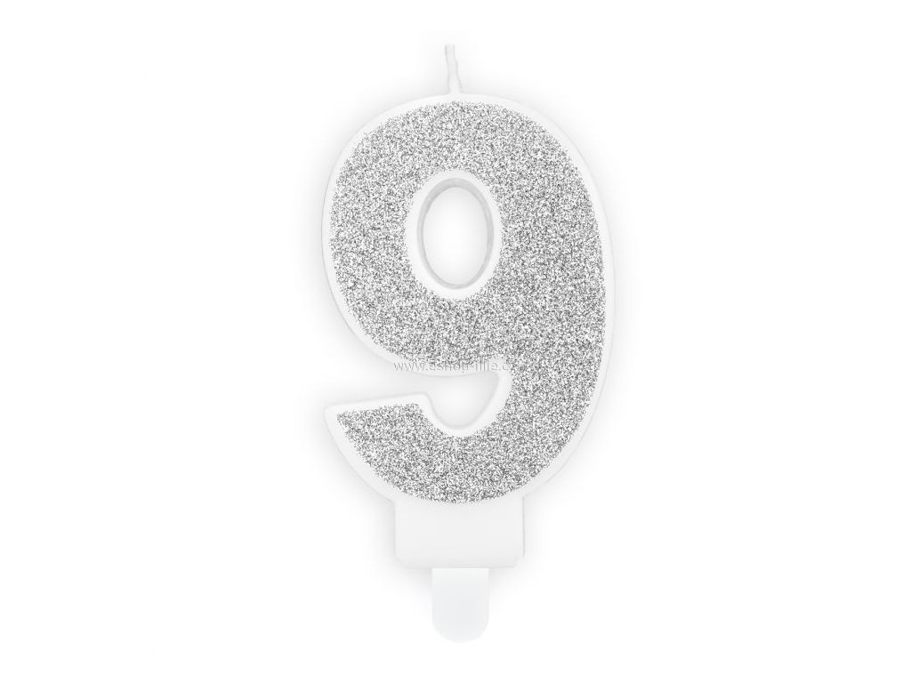 Devět stříbrná dortová svíčka SCU3-9-018B