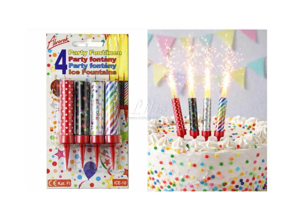 Fontány snadno zapíchnete do slavnostního dortu, připravených sklenic či pohárů. Hoří otevřeným plamenem po dobu cca 30 sekund, produkují malé množství kouře a jsou vhodné i do interiéru (při dodržení bezpečnostních pravidel). Gejzír překvapí a potěší každého oslavence a obzvlášť rozzáří dětské oči.