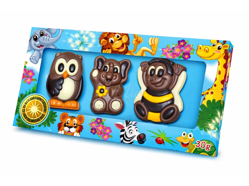 Zvířátka jsou vyrobena z kvalitní belgické čokolády a barvena výhradně přírodními barvícími složkami. Skvěle se hodí nejen jako dekorace, ale také jako malý čokoládový dárek nebo sladká pozornost.