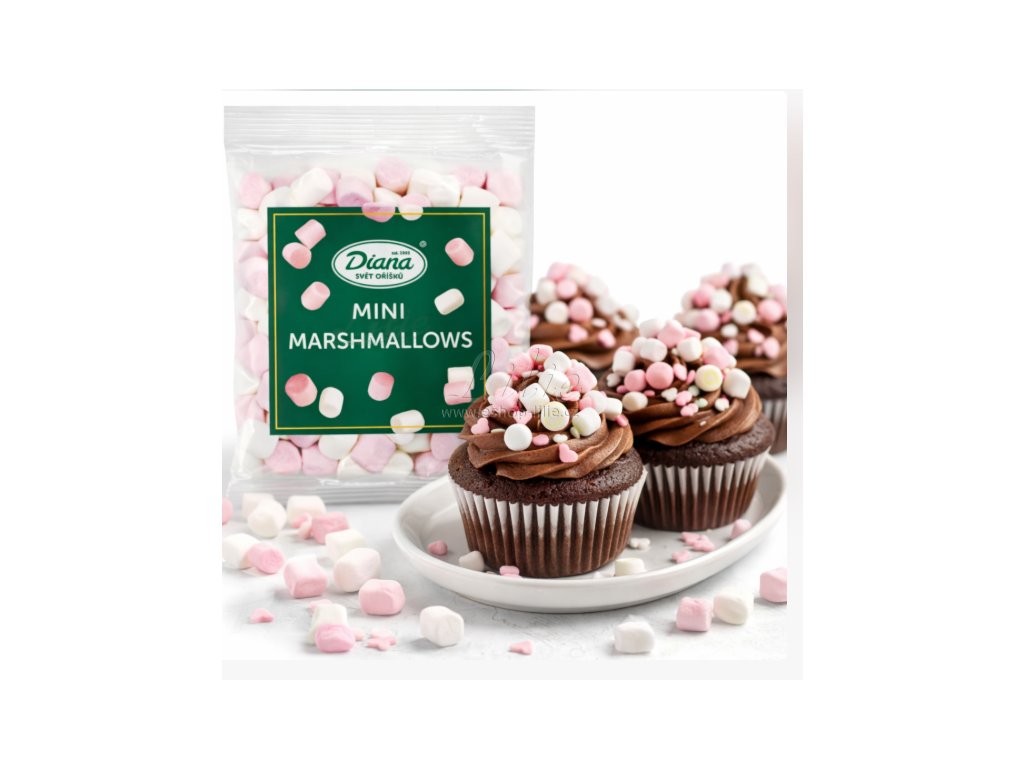Mini Marshmallows jsou oblíbenou cukrářskou dekorací, která dodá dezertům hravý vzhled a jemnou sladkou chuť. Díky malé velikosti se skvěle hodí na dorty, muffiny, cupcaky, sušenky, brownies, ale také do horké čokolády, kávy nebo na sweet bar.