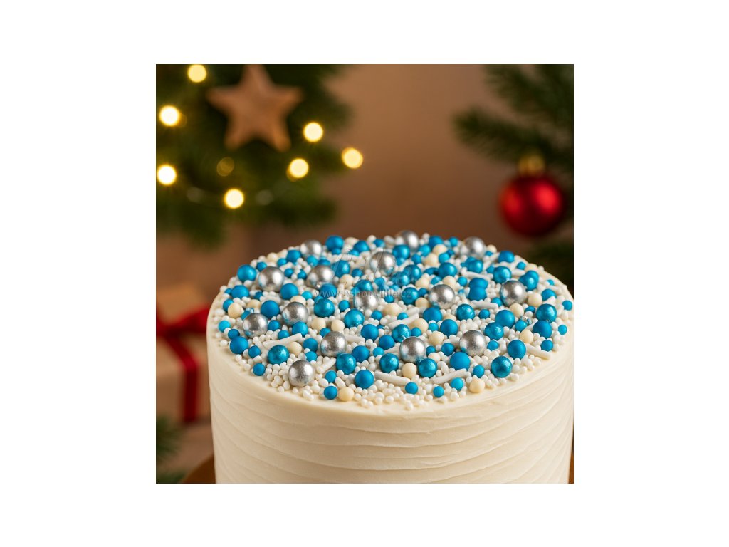 Oživte své pečení o Sprinkles Sandy Beach. Tento mix nabízí poměr perleťových, bílých, tyrkysových, modrých a stříbrných prvků, díky čemuž zvládnete snadno vytvořit: zimní a mrazivé motivy s ledovým nebo sněhovým efektem, plážové, mořské či tropické dekorace – sladký pocit dovolené na dezertu