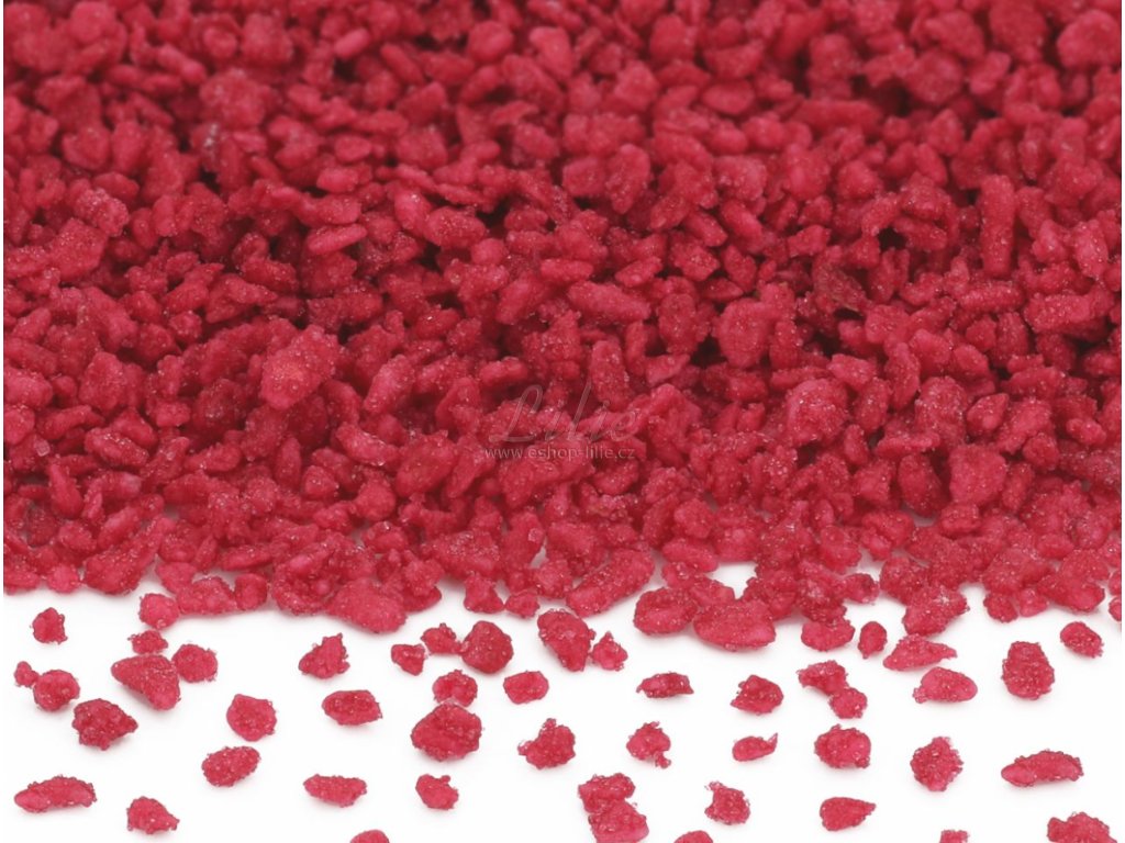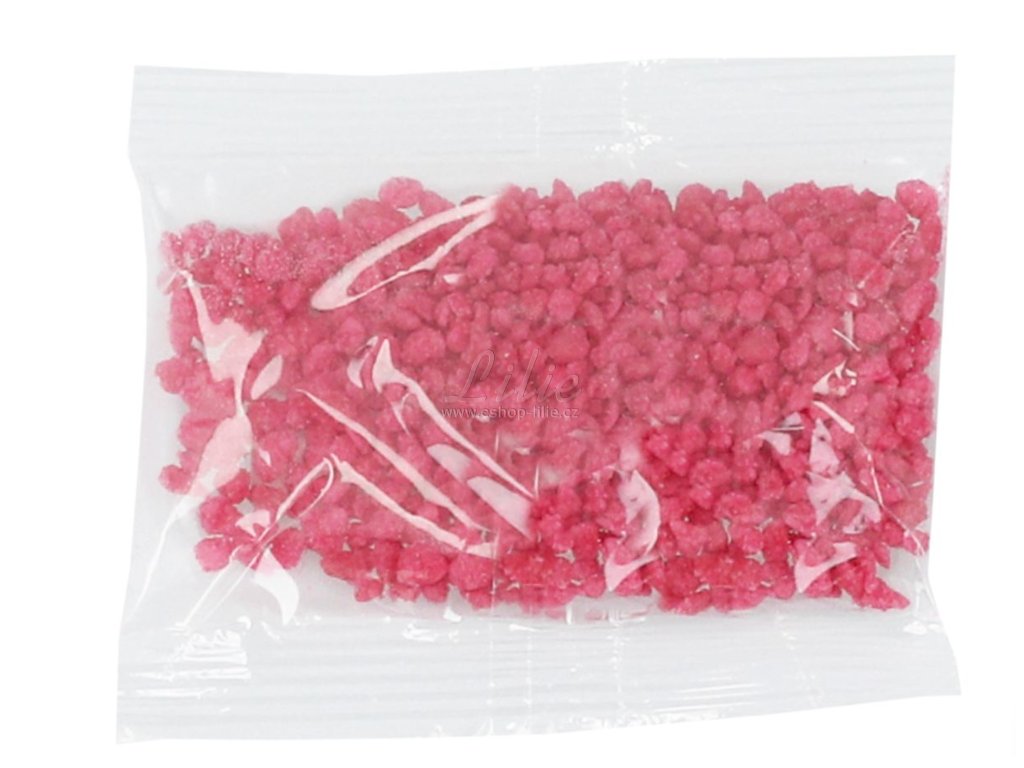 Složení: cukr, květy růže, zahušťovadlo: arabská guma; aroma, barvivo: E120 (karmín).