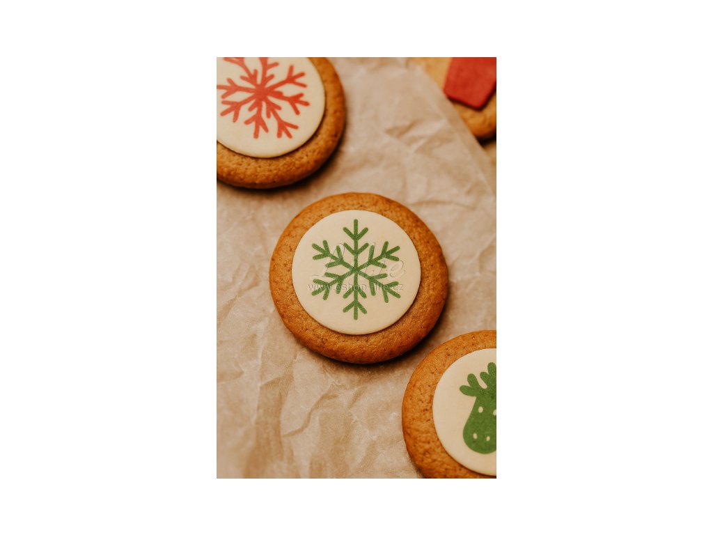 Fondánový list je potištěn potravinářskými barvami s vánočními motivy. Při teplotě nad 25 °C zůstává krásně ohebný, v chladu tuhne – což usnadňuje tvarování a aplikaci.