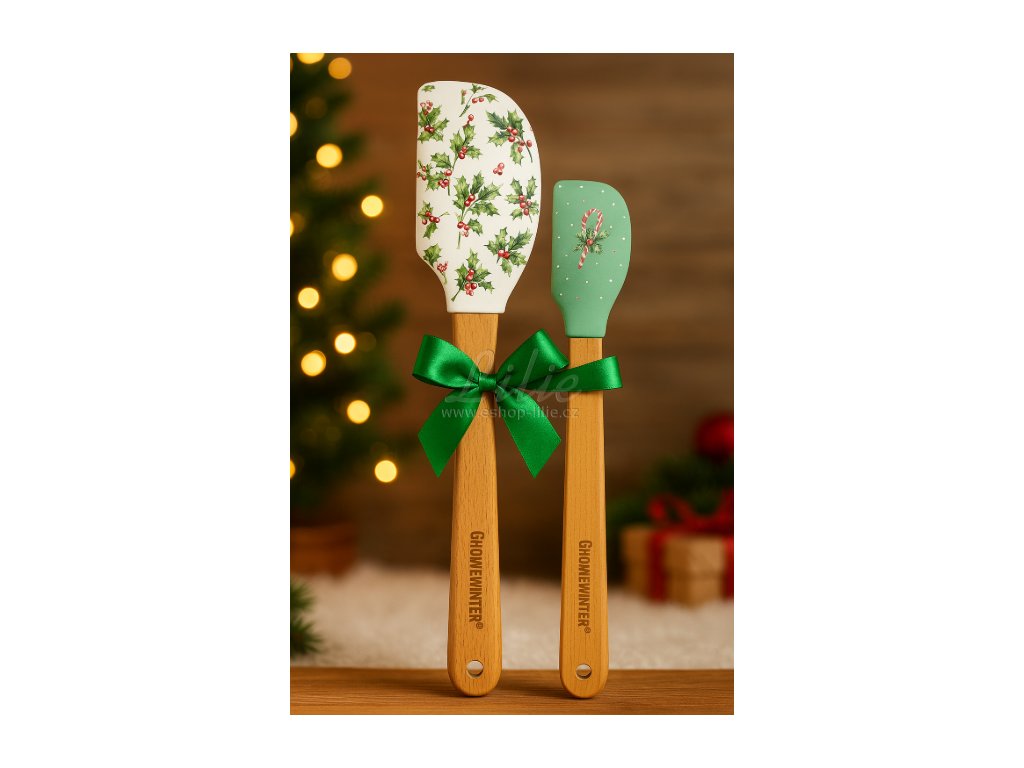 Obě stěrky mají kvalitní silikonovou hlavici, která je šetrná k nádobí, odolná vůči teplu a skvěle se čistí. Praktická dřevěná rukojeť krásně padne do ruky a dodává celé sadě přírodní a elegantní vzhled.