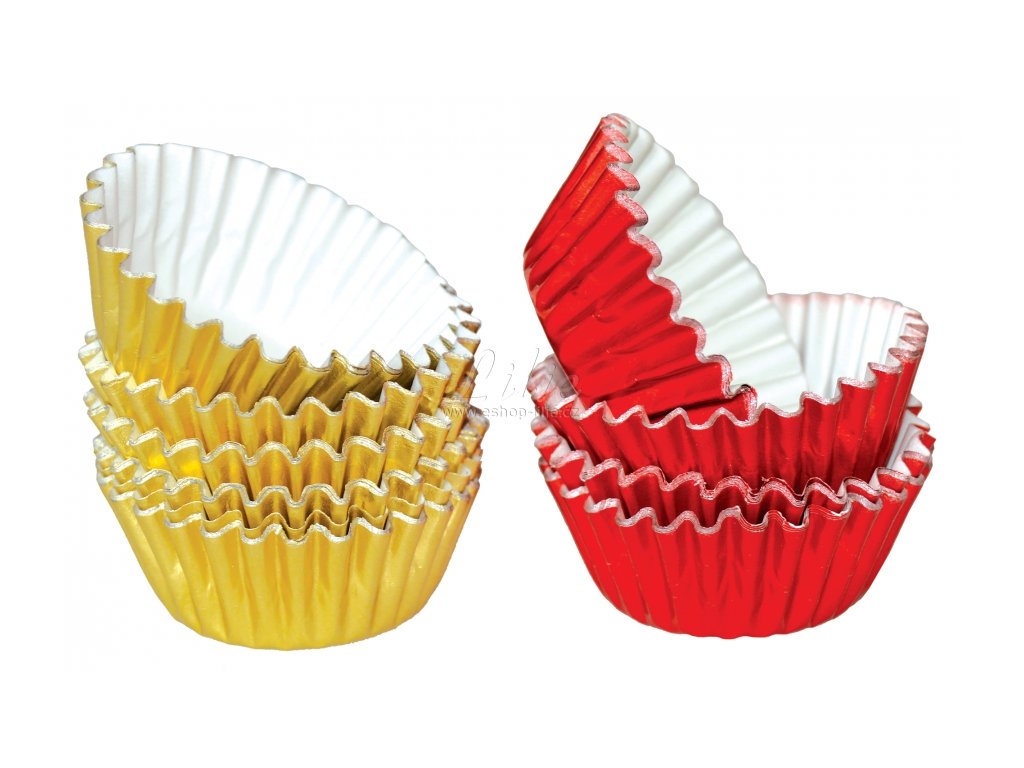 Hliníkové košíčky na pralinky 50 ks P-903 zlaté/červené