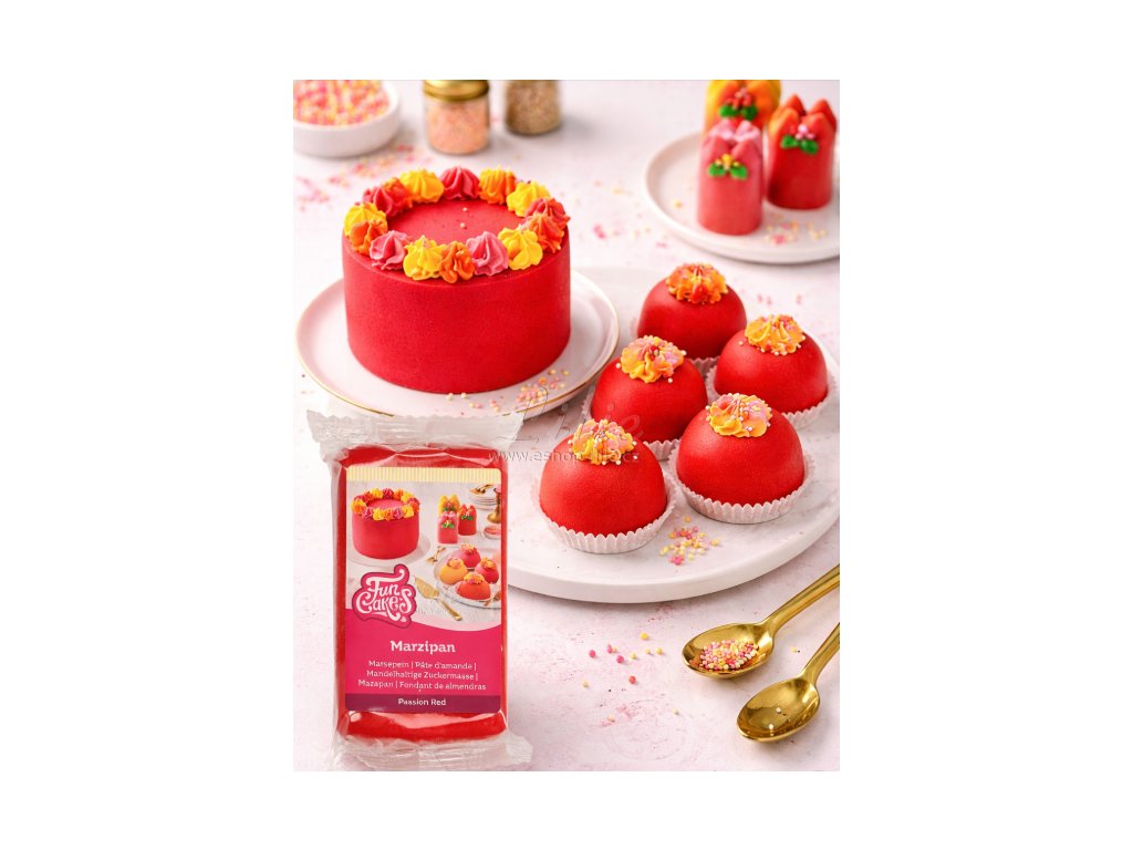 Červený marcipán Passion Red značky FunCakes je vysoce kvalitní marcipán se sytým červeným odstínem, který ocení jak domácí pekaři, tak profesionální cukráři.