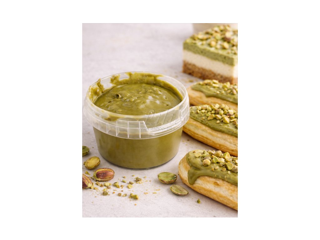 Pistáciová náplň do pralinek Brunella 250g je profesionální cukrářský krém s vysokým podílem pistácií, vhodný pro plnění čokolád, výrobu zmrzliny, ochucení krémů i promazávání dortových korpusů.