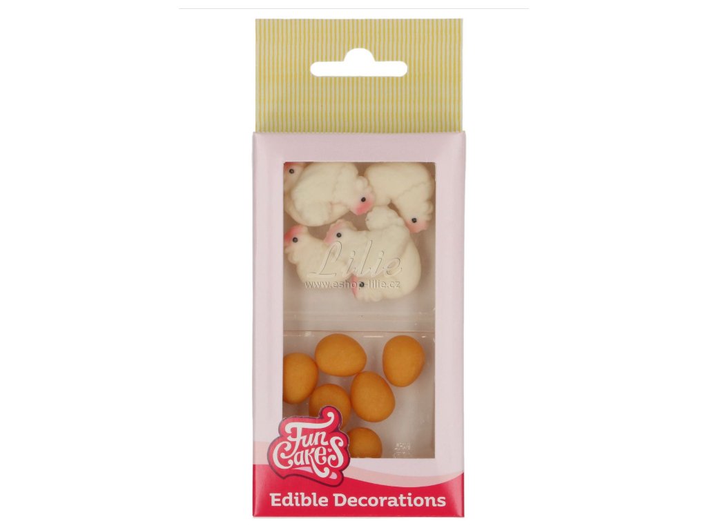 Cukrové dekorace kuřátko a vajíčko FunCakes jsou ideální pro zdobení velikonočních dortů, cupcakes, muffinů i sušenek a dodají dezertům veselý jarní vzhled.