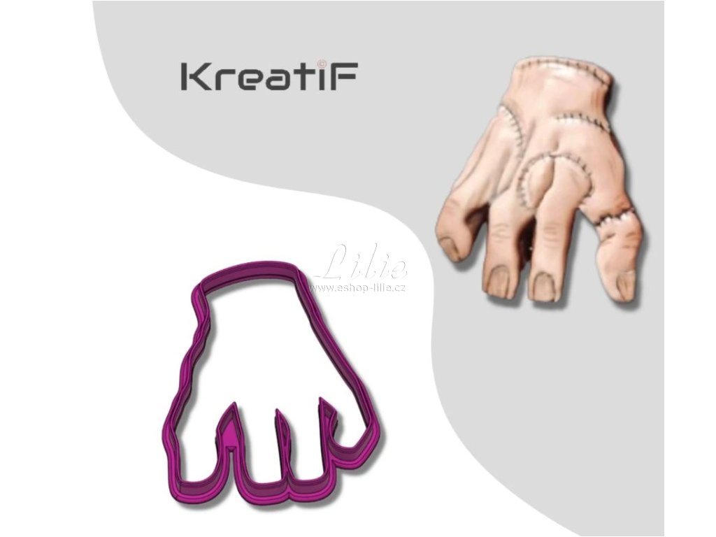 Motiv ruky „Věc“ ze seriálu Wednesday Addams – oblíbený a výrazný design.