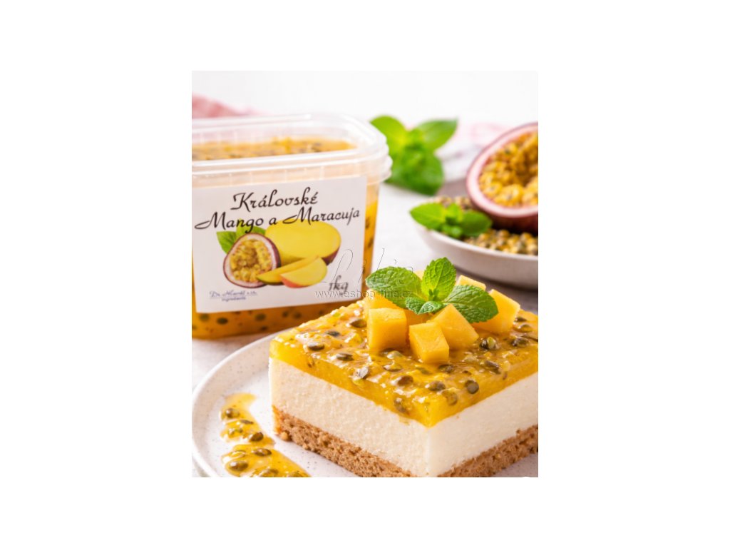Královské Mango & Maracuja džem 1 kg je termostabilní ovocná náplň s vysokým podílem manga a maracuji, ideální do dortů, koláčů, rolád i profesionální cukrářské výroby.