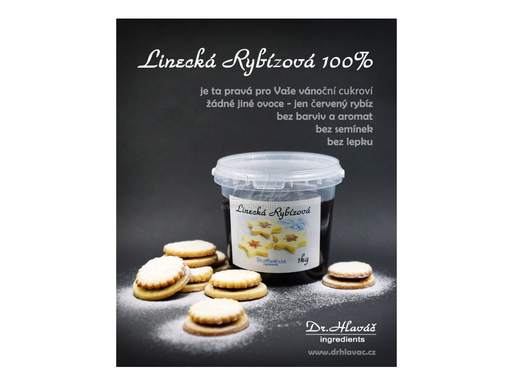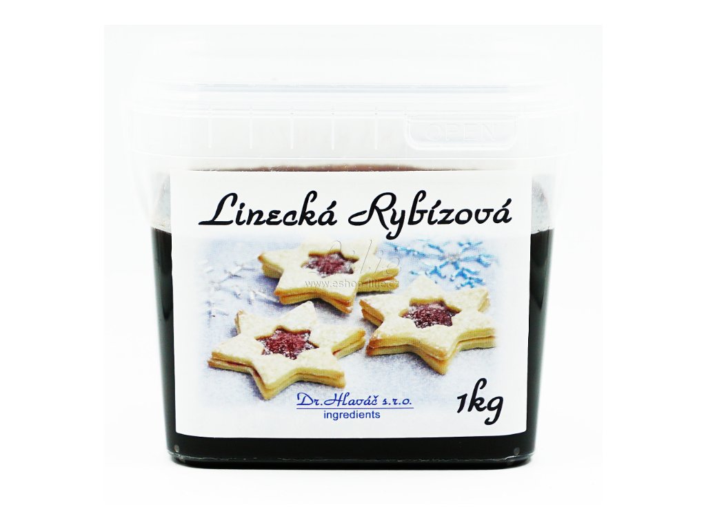 Složení: červený rybíz 83g na 100g linecké náplně (hladký bez semínek a slupek), jablečná dřeň, glukózo-fruktózový sirup, kukuřičný modifikovaný škrob, stabilizátor (ovocný pektin), konzervant (sorban draselný), aroma.