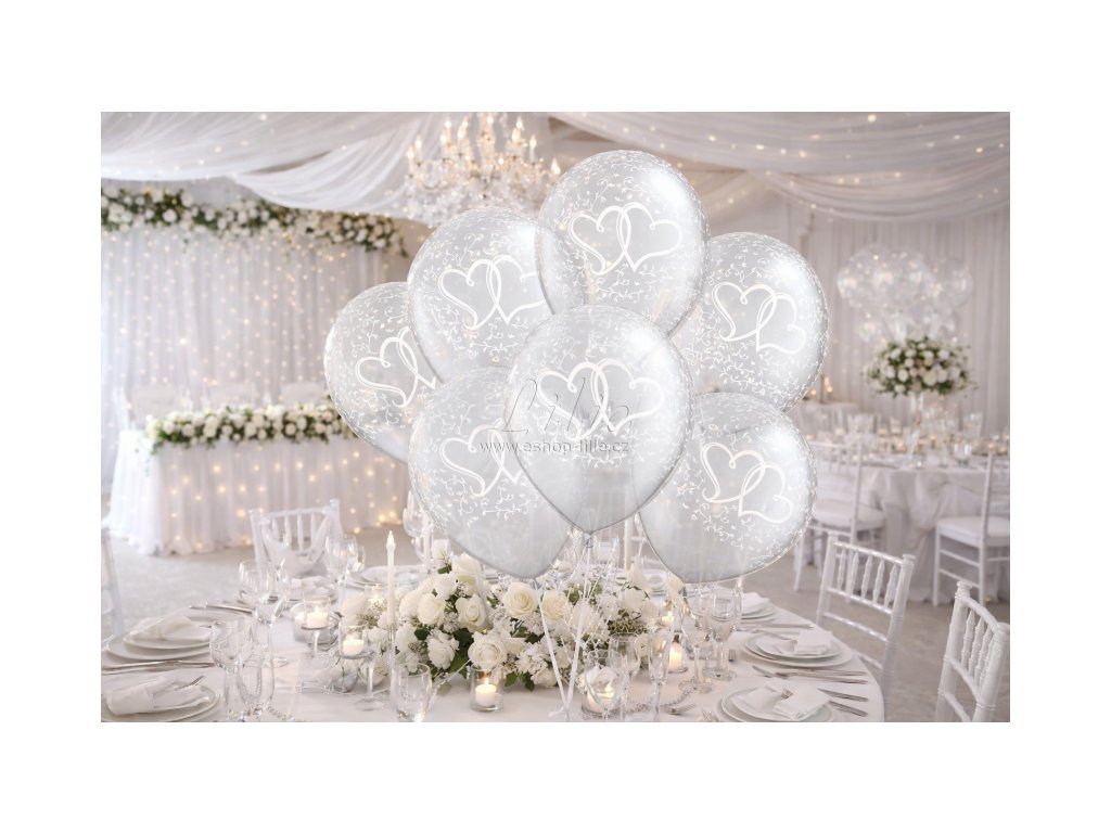Průhledné balónky s bílým potiskem srdcí 30cm B-28