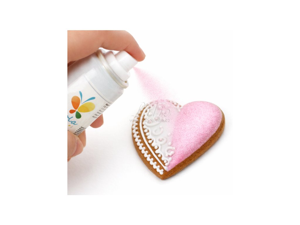 Perleťový sprej v odstínu růžové je určen pro snadné a rovnoměrné barvení jedlých povrchů. Vytváří jemný metalicko-perleťový efekt, který zvýrazní detaily a dodá dezertům moderní, elegantní vzhled.