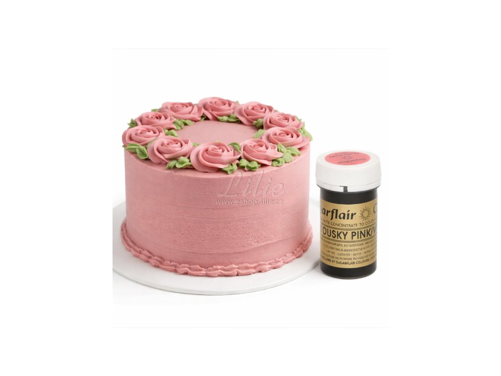 Gelová barva Dusky Pink Wine od značky Sugarflair Colours nabízí hluboký temně růžový až vínový tón, který dodá dezertům luxusní a moderní vzhled. Díky vysoké koncentraci je velmi úsporná a snadno se dávkuje.