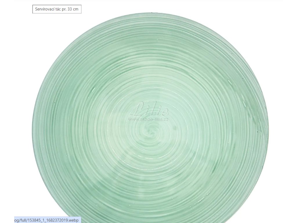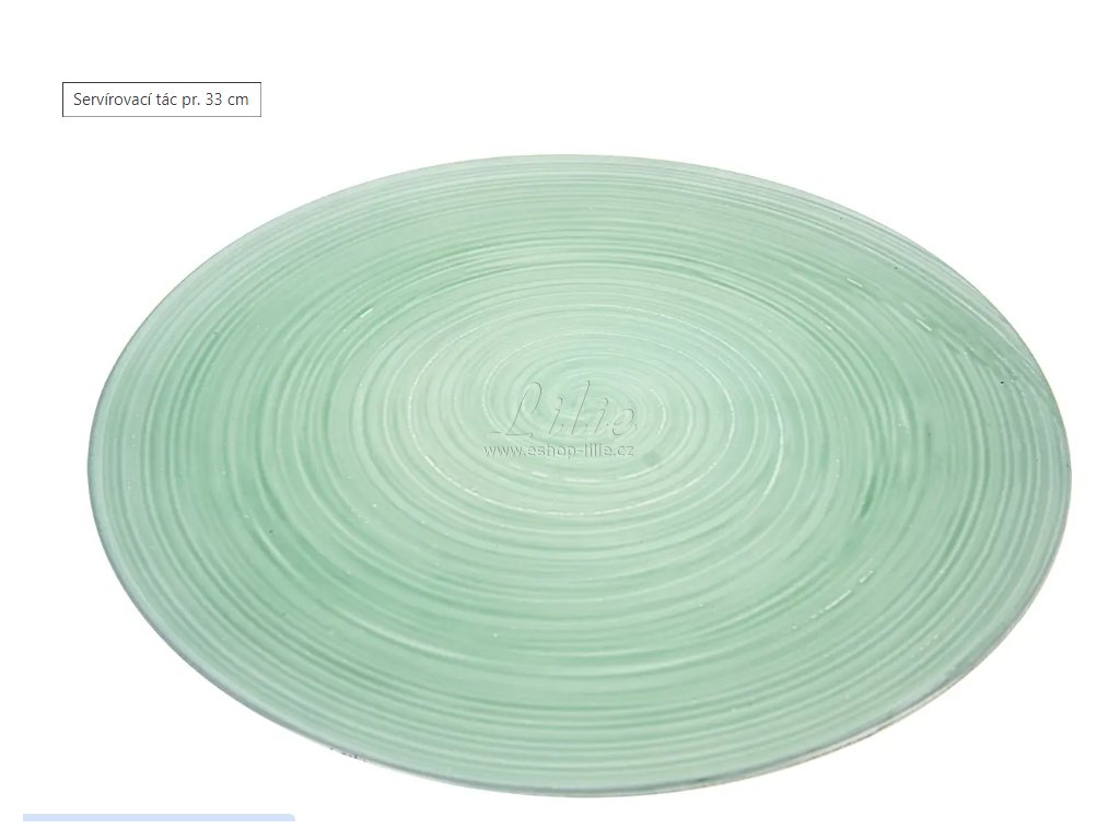 Má decentní spirálový vzor a rozměr 33 cm, vejde se na něj dort na podnose, koláč ve formě, ale i kamínky, mušličky a jiné dekorace na něm budou hezky vypadat.