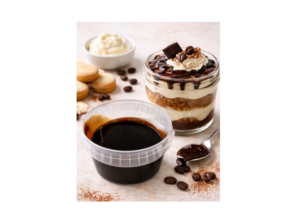 Složení: cukr, glukózo-fruktózový sirup, voda, káva, odtučněný kakaový prášek, modifikovaný škrob, aroma