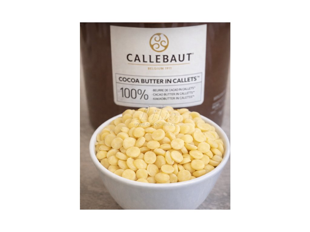 Kakaové máslo Callebaut je prvotřídní surovina vyrobená z primárního lisování kakaových bobů, určená pro profesionální i domácí cukráře. Díky formě mini peciček (callets) se velmi snadno dávkuje a rychle a rovnoměrně rozpouští.