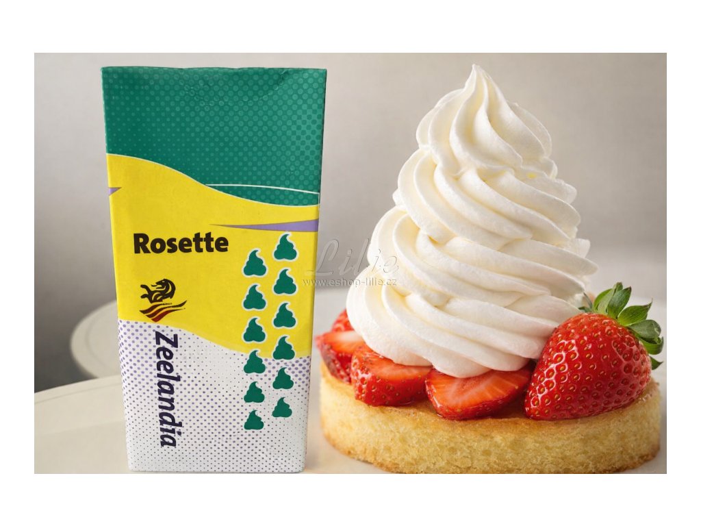 ROSETTE rostlinná slazená šlehačka 1 l je stabilní profesionální krém na šlehání s vysokým nášlehem vhodný pro dorty, dezerty, mousse i cukrářské provozy.