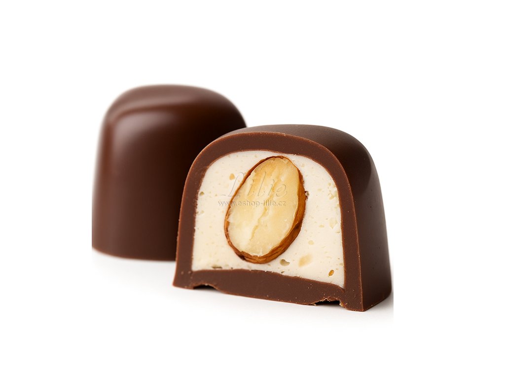 Složení: cukr, glukózový sirup, mandle (15 %), voda, rostlinný tuk (palmový a kokosový), pudr ze sušených slepičích vajec, sušené odstředěné mléko, přírodní příchutě.