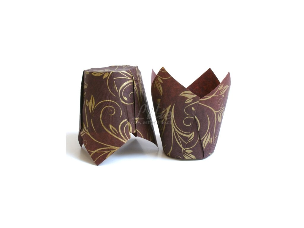 Hnědo-zlaté cukrářské tulipánové košíčky 8cm 50ks