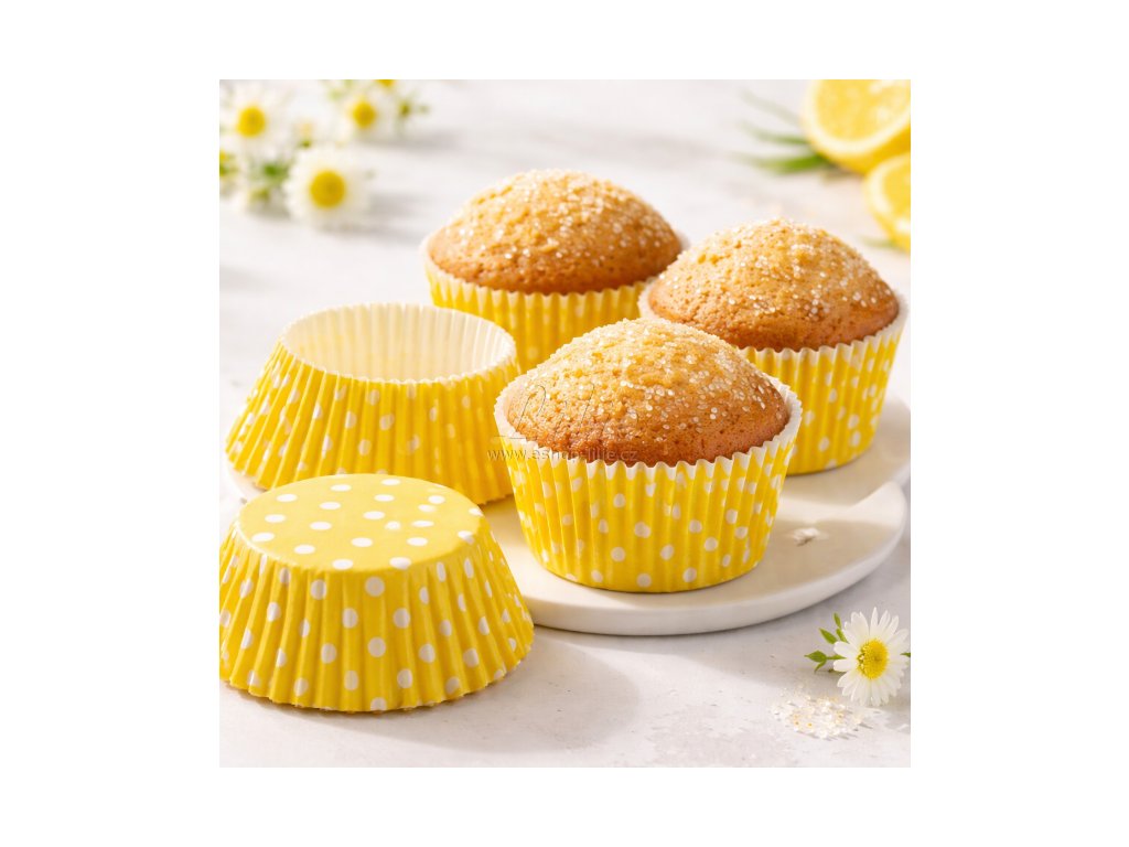 Žluté cukrářské košíčky s puntíky jsou ideální papírové košíčky na muffiny a cupcakes, které dodají vašim dezertům krásný vzhled a zároveň zajistí perfektní výsledek při pečení.